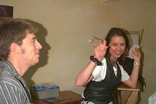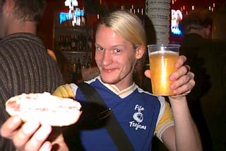 Happy Aruna! Das ewige Leuchten in den Augen - Big Blonde! Marky - wenn Deine Pizzen so verkniffen aussehen, wie Du hier guckst, möchte ich doch nicht von Dir eingeladen werden ;-) Schau ihm in die Augen, Kleines - Hannesjeyvic, frisch vom Hairdresser... süüüüß! Soviel zum Thema Catering im ZAKK... Ich hab Euch doch gewarnt: Dark MaxX ohne Brille - unbelievable... Wer ist dieses Girlie? Nicht zu glauben, WIR haben ihn: Den ersten höchstoffiziellen Shot von TANTE TRUDE! Wir wissen: She's gooooooodloooooking..... Just married: Frl. Rottenmeyer aus dem Arcari - Jeanne. Tinosseus - die JEMende Goldlocke im Auftrag des PRINZ. Wie immer höchst skeptisch mit schicken Haarknubbeln am Unterkiefer: Romano. Mighty Flores and Junior Bozz - Drum'n'Bass keep smiling! Wow - sexy baby Andy Zingsem mit No Vegyzz im ZAKK... ...Gute Nacht zusammen, morgen mehr Gossip aus den heiligen Hallen! CU! SanDee